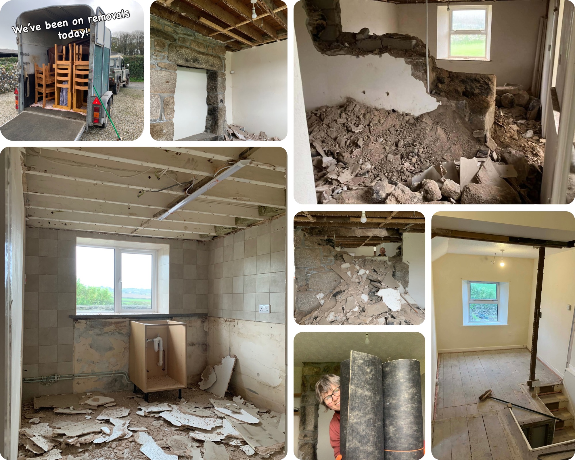 We are currently putting the two properties into one which will become Horseshoe Cottage. We are doing as much of the work ourselves and are donning hard hats, knocking down walls and generally making great headway with the alterations which will result in a much more spacious living space and kitchen as well as an extra bathroom. As you can see from the photos below, we have been making quite a mess so far!